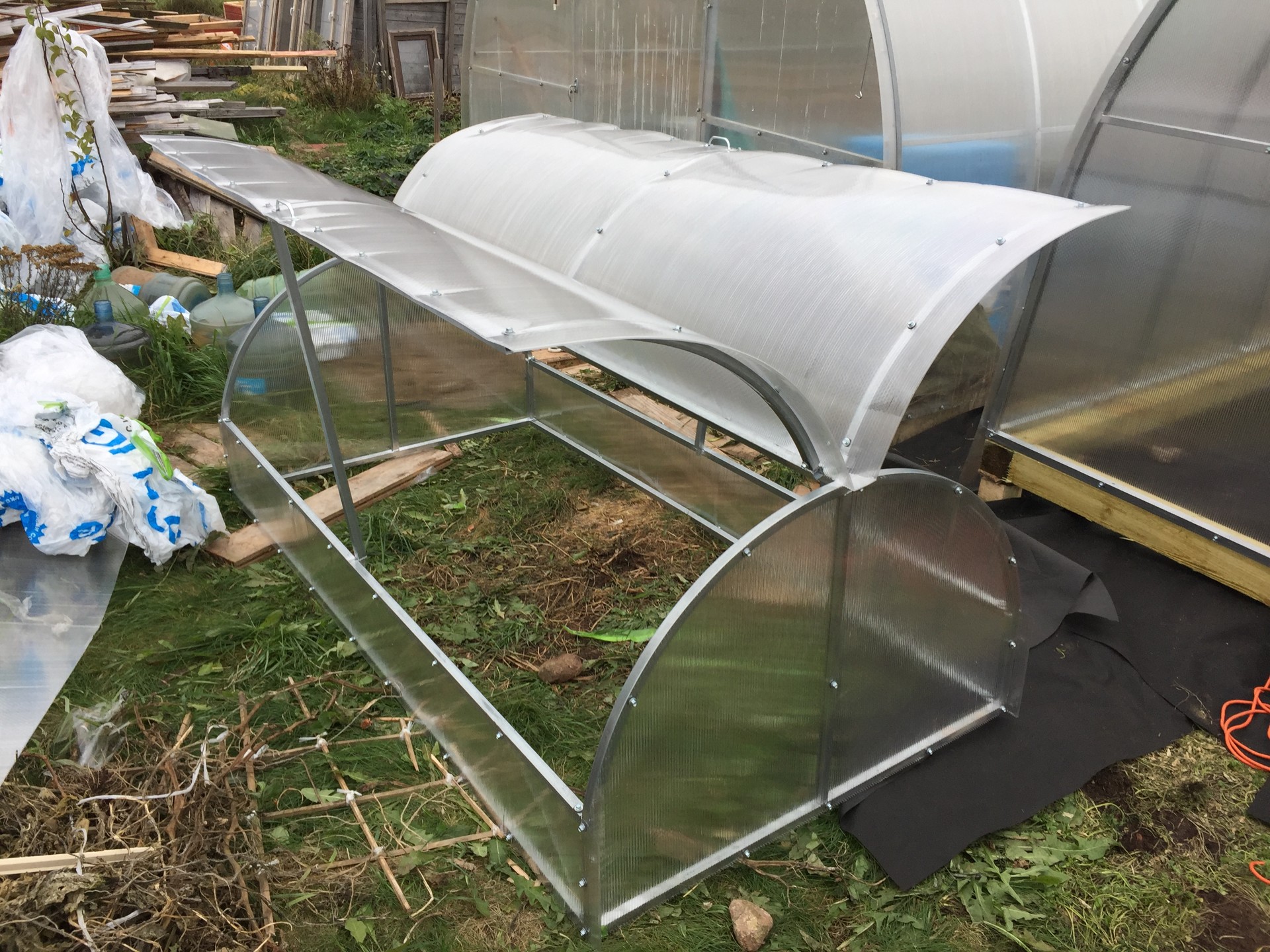Un petit truc: augmentez légèrement de 10 centimètres le bord nord de la serre par rapport au sud, ce qui augmentera la protection contre le froid, améliorera le réchauffement avec la lumière du soleil,nettoyer la surface des précipitations.