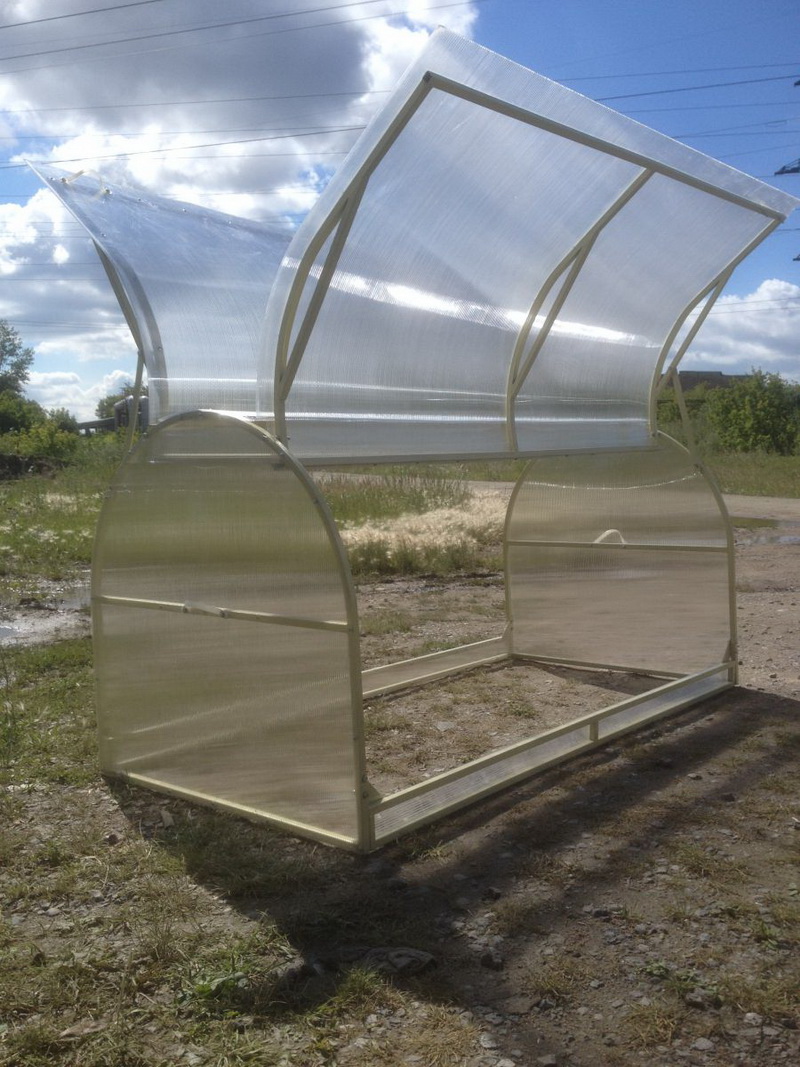 La «taverne» a également à la base une arche tronquée dont les côtés s’ouvrent des deux côtés. La serre en ce moment ressemble à des ailes de papillon. Le deuxième nom de ces serres - "Papillon"."Belgian" est une serre "maison" avec un boîtier rectangulaire qui ressemble à une boîte. Le toit à charnière est le plus souvent odnoskatnoy, il ressemble vraiment à la couverture de la poitrine.