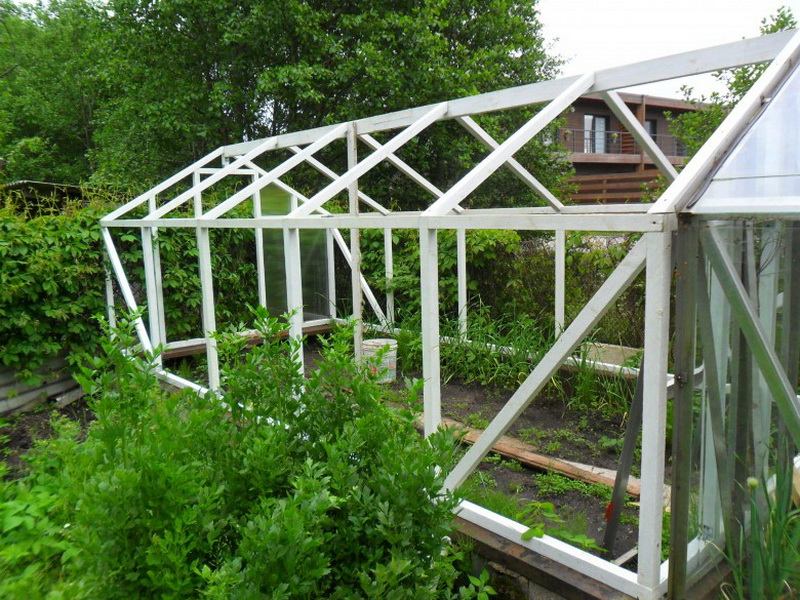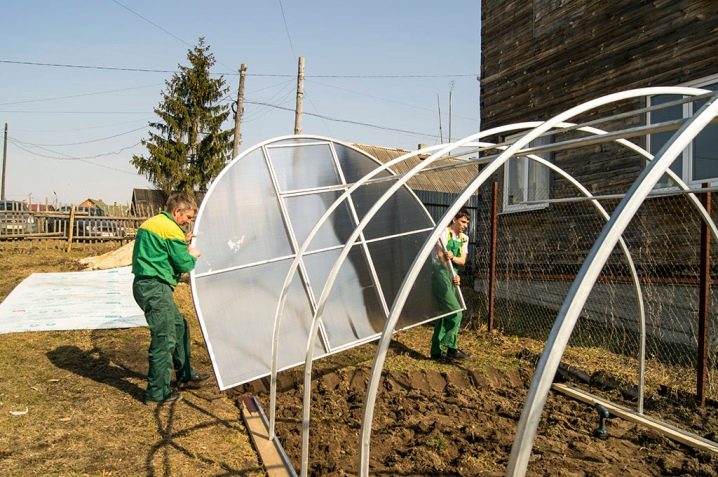 Les pièces métalliques sont peintes avec un antivirus puis émaillées. Le polycarbonate est essuyé avec une éponge imbibée d’eau savonneuse. S'il y a des éraflures ou des éraflures, il est recommandé de les sceller avec une colle spéciale. Après l'hiver, les feuilles sont parfois déformées et doivent être vérifiées. Un travail approfondi doit toujours être effectué - c'est la garantie d'une bonne récolte future.