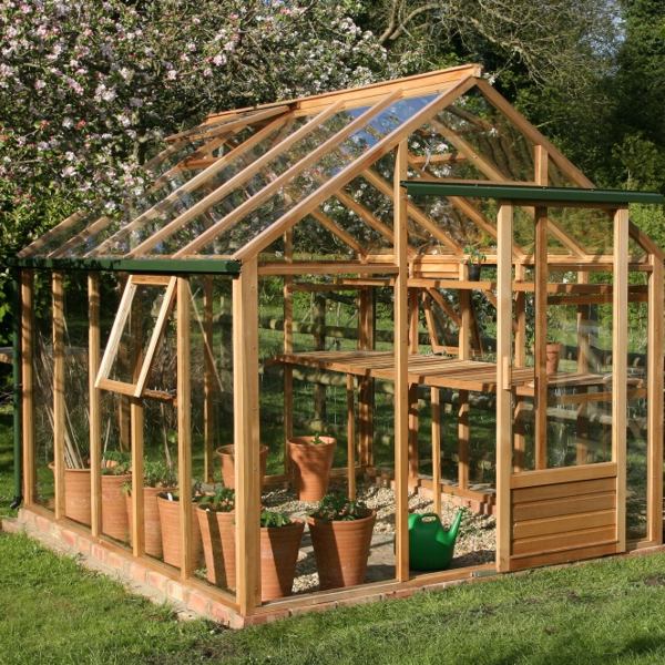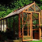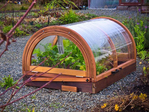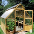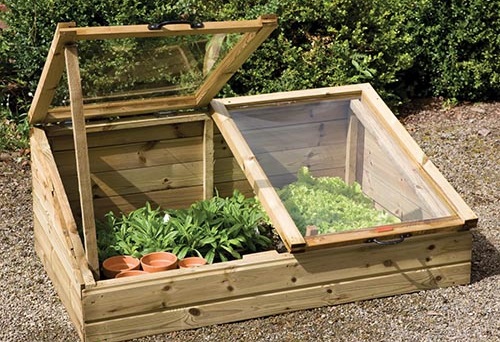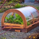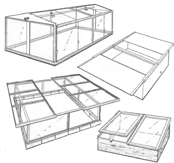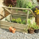 - Le plus souvent sur les sites, vous pouvez trouver des serres faites de planches de bois. Le volume utile dans de tels bâtiments peut être fermé avec un couvercle en forme de cadre avec du verre. Ils peuvent être ouverts et fermés si nécessaire. Les serres de ce type sont idéales pour la culture de jeunes plants ou une variété de verdure afin de les mettre au plus tôt à la table.