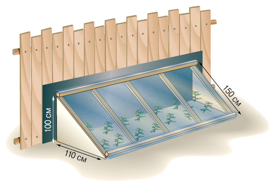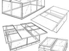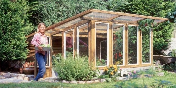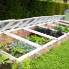 Une telle construction ne coûtera pas cher aux propriétaires. Pour sa fabrication n'aura besoin que des vieux cadres de fenêtre. Si des lunettes y sont déjà présentes, il est permis de les laisser à leur place et de les utiliser en remplacement du matériau de revêtement principal. Si les cadres sont vides, ils doivent ensuite être complétés après l'installation par un film ou des feuilles de polycarbonate doivent être installés dans des zones vides.