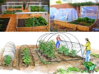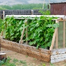 - Pour les concombres, des lits séparés sont généralement construits, dont la hauteur correspond à la hauteur des plantations elles-mêmes. Les experts recommandent de concevoir des modèles sur mesure pour ces légumes - sous la forme d’une tente.