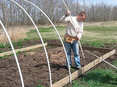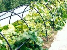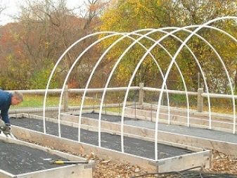 - Il n'est pas recommandé de faire des couvertures en forme d'arc trop longues. Une structure plutôt fragile et instable peut s'effondrer sous de fortes rafales de vent. Pour assurer la construction de caractéristiques de résistance supplémentaires, il est recommandé de fixer des supports verticaux spéciaux au centre des éléments extrêmes.