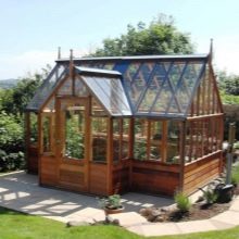 Les serres sont bonnes car elles peuvent avoir presque toutes les structures. Cela peut être non seulement des bâtiments simples et simples, complétés par un revêtement sous forme de film, mais également des structures plus attrayantes et durables avec des inserts en verre ou en polycarbonate. En apparence, ces dernières cessent de ressembler à des serres standard - elles ressemblent davantage à des serres à part entière.