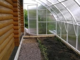 Souvent, de telles structures multifonctionnelles et bien pensées sont attachées à certains murs des dépendances sur le site ou au bâtiment résidentiel lui-même. Avec cette décision d'entrer dans de tels bâtiments sera beaucoup plus pratique, ainsi que de prendre soin des cultures qui seront à l'intérieur. En outre, les plants seront à l'aise dans de telles conditions à tout moment de l'année. Souvent, les propriétaires organisent l'entrée de telles serres directement de chez eux - c'est une solution très populaire et pratique.