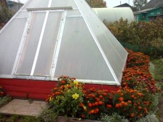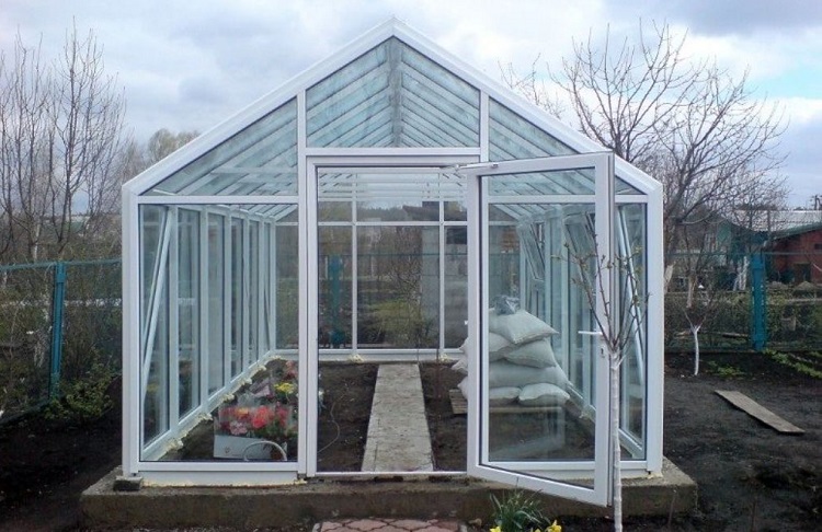 Les plus populaires sont les dessins à pignon. Ils ne sont pas seulement considérés comme faciles à utiliser, ils sont aussi jolis. Les hautes serres à double face avec garniture en verre deviennent souvent une véritable décoration du site, surtout si elles produisent des plantes magnifiques et colorées, telles que des fleurs.
