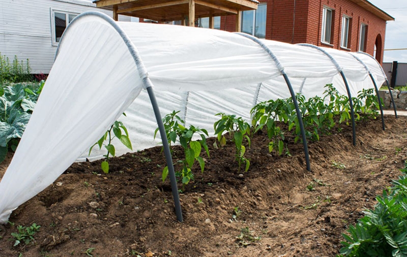 - Spunbond. De nombreux jardiniers couvrent les serres faites avec des matériaux tels que le spunbond. C'est un matériau non tissé à base de polymère fondu. Cette matière première présente une perméabilité à l'air élevée, une structure homogène, une translucidité, un faible poids, une résistance élevée, la résistance aux précipitations et le respect de l'environnement. Spunbond est beaucoup plus pratique et fiable que le film de serre standard, il est donc souvent abordé.