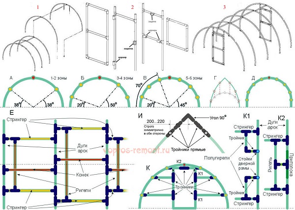 - Lorsque les arcs qui remplissent les fonctions des principes fondamentaux sont fixés, ils doivent être attachés les uns aux autres. Pour ce faire, vous pouvez utiliser un tuyau de longueur correspondant à l'ensemble du bâtiment.