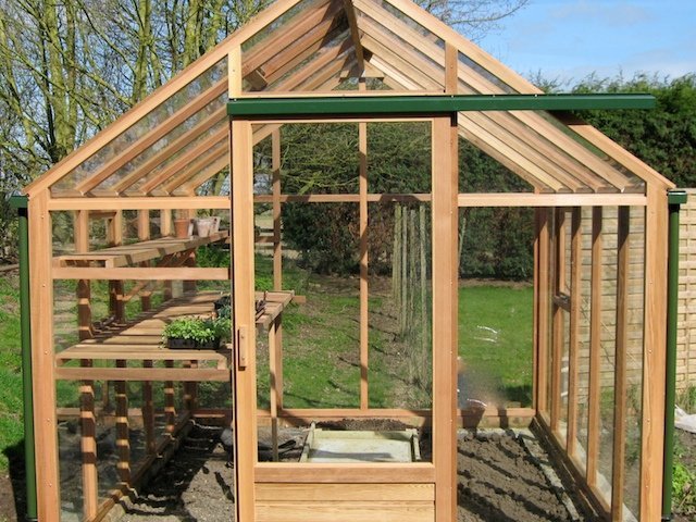 La plupart des résidents d’été construisent des serres à pignons en bois. Ils cultiveront des tomates et d'autres cultures similaires. À l'une des extrémités des bâtiments, établissez un panneau de porte qui sera responsable de l'accès de la personne aux paliers pour en prendre soin.