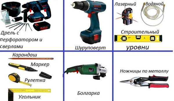 - niveau de construction (il est souhaitable d'utiliser un laser ou une bulle - ils sont les plus pratiques);