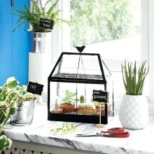 Une petite serre, située sur le rebord de la fenêtre, peut décorer de nombreux intérieurs. L'essentiel est de créer avec compétence des ensembles harmonieux dans lesquels tous les détails se chevaucheront, formant ainsi un environnement esthétique.