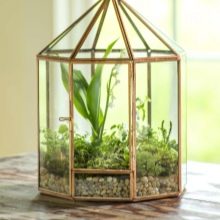 - Les serres peuvent être rendues plus esthétiques en ajoutant différents éléments de décor. En conséquence, avec de tels détails, l'intérieur devient plus attrayant et original.