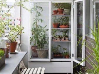 Il est permis de placer une petite serre dans un bloc balcon ou une loggia. De plus, dans de telles conditions, souvent, non seulement des versions compactes sont installées, mais également les spécimens susmentionnés sous la forme d'armoires. La chose principale est que la loggia ou le bloc de balcon doit être vitré de haute qualité.Souvent, des supports spéciaux sont conçus pour les plants, qui sont placés près de la fenêtre ou sur un balcon vitré chaud. Comme ces structures sont ouvertes, elles se caractérisent par une capacité remarquable de transmission de la lumière et les plantes s'y développent bien.