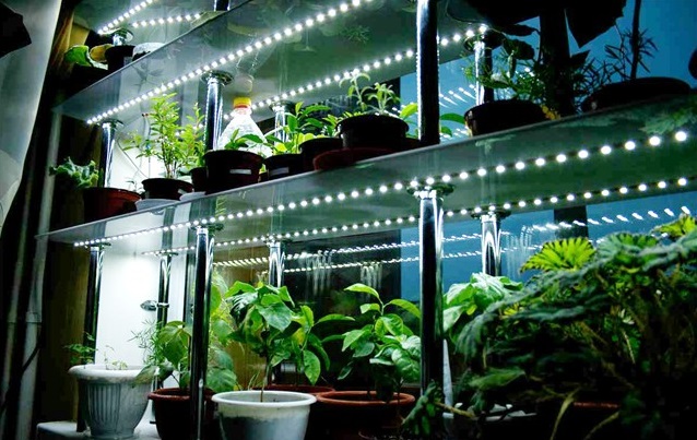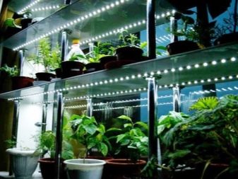 Il est très important de bien éclairer les semis qui poussent dans une serre d’appartement, surtout en ce qui concerne la saison hivernale, lorsque les rayons du soleil sont montrés peu souvent et pas longtemps. Si vous avez placé les plantes sur les étagères du rack, vous pouvez les compléter avec des fitolamps spéciaux. De tels produits n'affectent pas la température de l'air. De plus, ils sont écologiques, durables et très économiques.