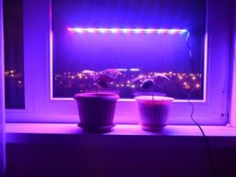 Un éclairage bien choisi peut non seulement profiter aux plantations en croissance, mais aussi décorer l’intérieur, le rendant ainsi plus mystérieux et original. Dans les conditions d'un appui de fenêtre, les dispositifs d'éclairage du type à LED, émettant des couleurs violettes et bleues, sont particulièrement attrayants. La nuit, il est difficile de les détourner du regard.