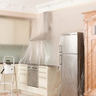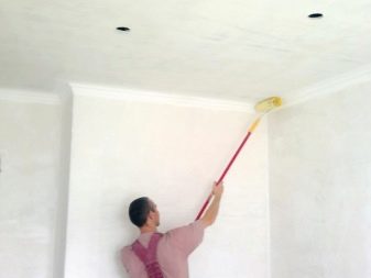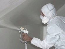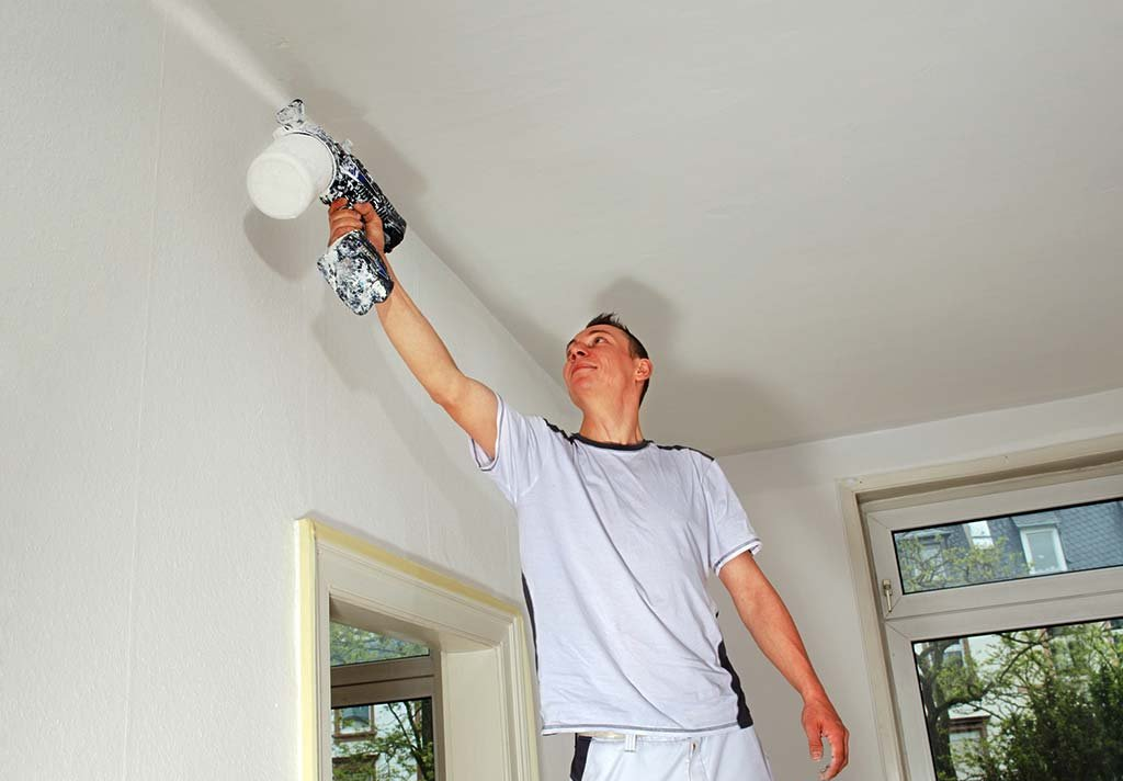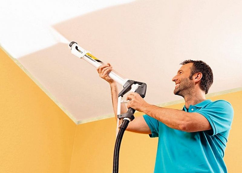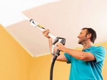 Le plus souvent, lors de réparations à domicile, les plafonds sont blanchis à l'aide de brosses ou d'un rouleau. Vous pouvez également, à ces fins, utiliser le pistolet de pulvérisation ou un aspirateur spécial. Mais en même temps, la peinture se déposera non seulement sur la surface du plafond, mais aussi sur les murs et le sol. Par conséquent, il est recommandé de couvrir toutes les surfaces de la pièce, à l'exception du plafond.