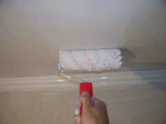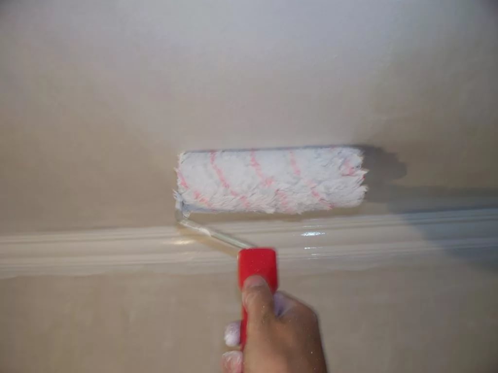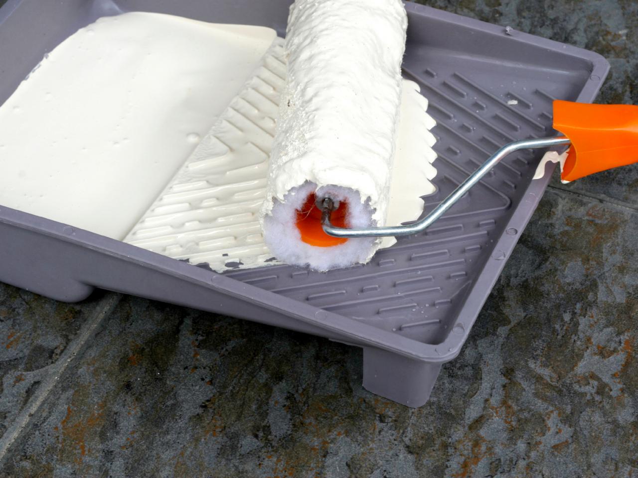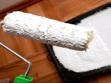Si vous envisagez d’utiliser un rouleau, vous devez en plus ramasser le plateau dans lequel l’outil sera mouillé. Il fournira une application lisse et uniforme de la solution sur la surface du plafond. Il convient de garder à l’esprit qu’il sera très difficile de blanchir la surface avec un rouleau dans les endroits et les coins difficiles à atteindre. Dans ce cas, vous devrez utiliser un pinceau.