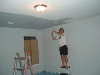 Avant de commencer le travail, vous devez préparer soigneusement la surface. Souvent, un nouveau badigeon est appliqué sur l'ancien. Mais l'option idéale serait de nettoyer le plafond de l'ancienne finition avec un nivellement supplémentaire de la surface.