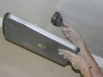 Une fois que l’ancien revêtement de finition a été entièrement retiré, il est nécessaire de nettoyer la surface du plafond de la saleté et des taches. Ensuite, vous devriez procéder à une inspection visuelle du plafond pour détecter les défauts de fissures et les divers creux. Tous les endroits défectueux doivent être enduits, pour lesquels vous pouvez fabriquer votre propre mastic à base de colle.