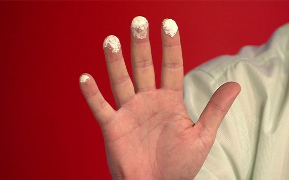 Le matériau de l'ancienne finition est assez simple à déterminer. Assez pour tenir votre doigt à la surface. Si le revêtement a été appliqué à la craie, il restera des traces de doigts. Lors de la finition des marques de chaux sur les doigts ne restent pas.