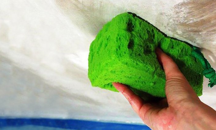 Pour enlever l’ancienne couche de craie, vous devez utiliser une éponge en mousse. Il doit être régulièrement mouillé dans l’eau et transporté à la surface du plafond. De même, vous pouvez supprimer progressivement toutes les couches de la vieille craie. Ensuite, la surface doit être essuyée avec un chiffon ordinaire, qui doit également souvent être humidifié avec de l'eau.