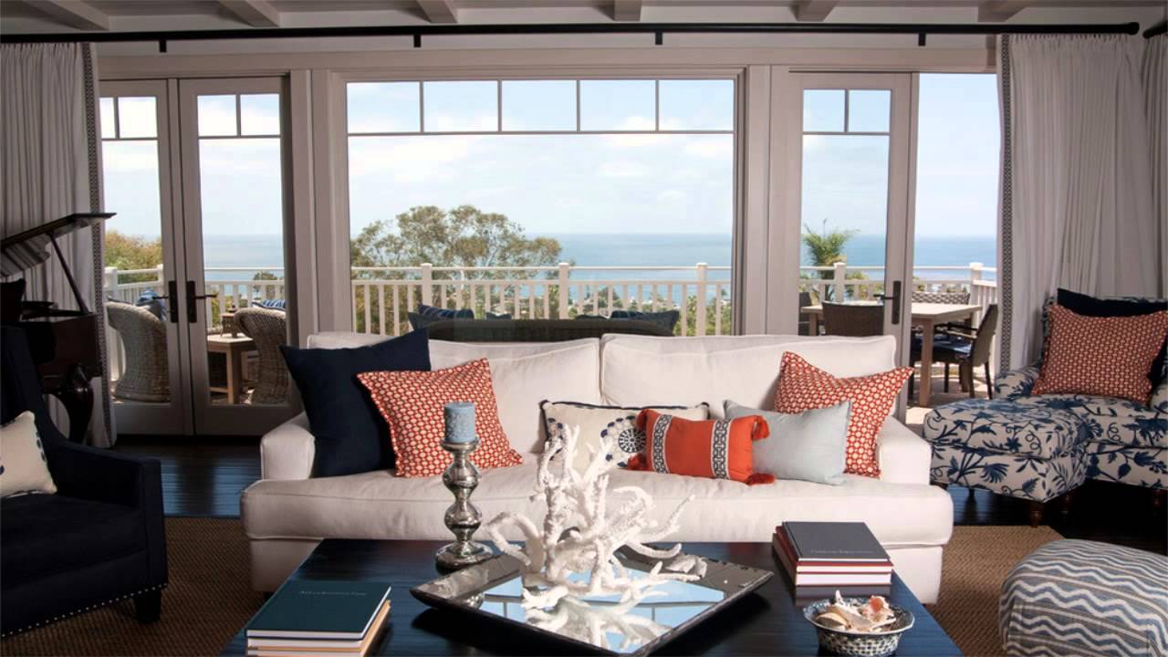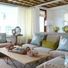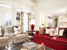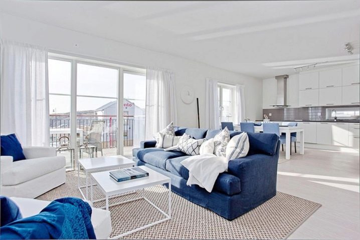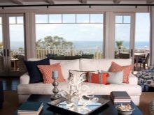 - des accessoires pour les tons bleu, bleu et vert conviendraient à un intérieur frais de style nautique: des tissus en lin et en coton avec des motifs de bateaux, d'étoiles de mer et de coquillages sont utilisés.