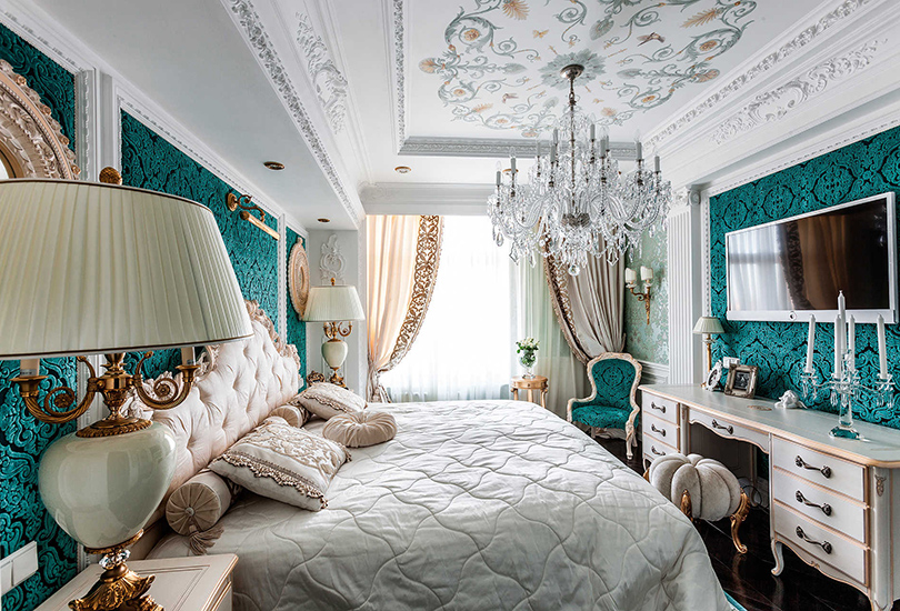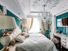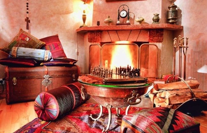 - intérieur en Le style oriental est luxueux et chaleureux. Couleurs vives, décoration chère, dorure, perlage prévalent. Ici, des matériaux en soie, une tapisserie riche, décorés avec des glands et des rubans seront appropriés;