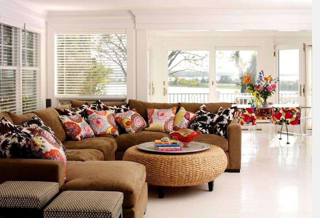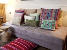 Il n’est pas nécessaire de combiner la couleur des coussins, il suffit de leur choisir des housses en tissus présentant une texture et un motif déterminés. La même technique est utilisée lorsqu'ils veulent rendre l'intérieur plus vivant.
