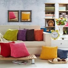 Des motifs abstraits de couleurs vives sur les taies des coussins animent notablement les pièces les plus ennuyeuses. Une telle variété de couleurs permet aux oreillers ordinaires de transformer n'importe quel intérieur, de le rendre plus lumineux et plus joyeux.