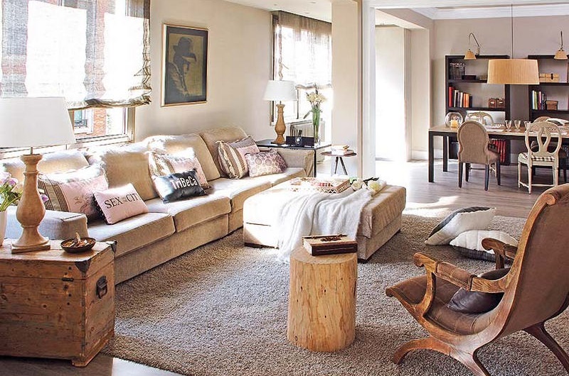 La règle principale dans le choix des éléments intérieurs pour ces styles est basée sur une combinaison de couleurs, de textures et de formes. La couleur des oreillers doit correspondre aux rideaux, aux meubles rembourrés et aux décorations textiles. Il n'est pas nécessaire que leur teinte soit la même, mais la couleur de certaines parties doit être proche de celle des autres accessoires.