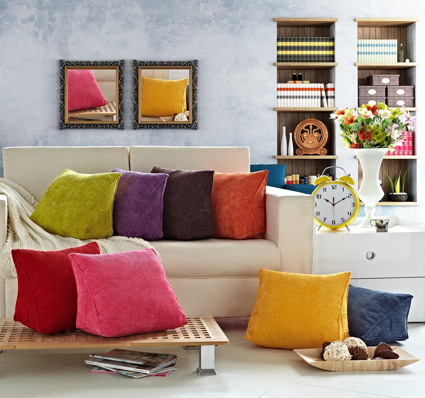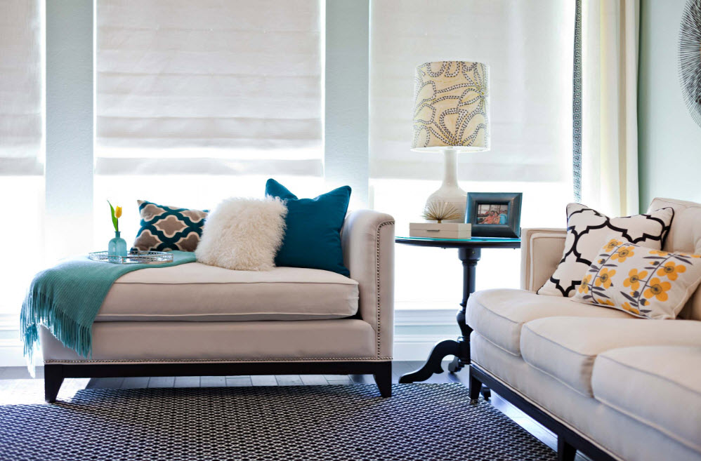 Dans les pièces où les meubles rembourrés contrastent avec la couleur des murs, les coussins rapprocheront les couleurs des murs.Cela donnera la complétude intérieure et des transitions de couleurs douces et nettes.