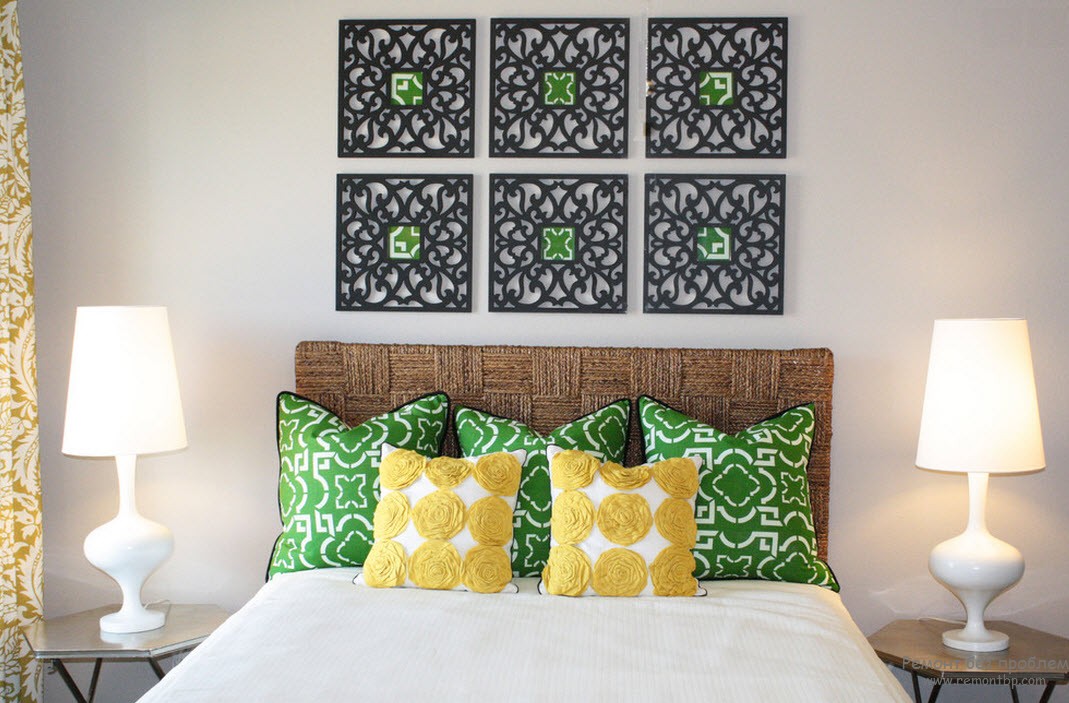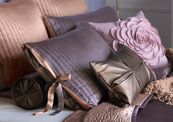 - Créer l'intérieur chambres à couchersi les oreillers doivent être placés à la tête du lit, il est avantageux d’acheter des couvertures en harmonie avec l’arrière-plan des murs ou en fonction de la texture des rideaux adaptés aux textiles.Il est pratique d’utiliser des oreillers avec des impressions double face.