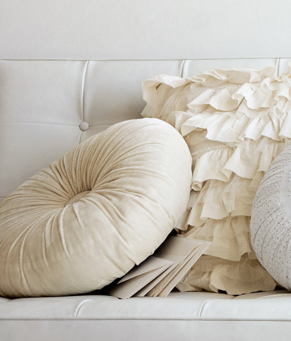Il convient de rappeler que l’intérieur dans le style provençal et chebbi-chic est caractérisé par la simplicité, l’ouverture et la lumière. Par conséquent, il est nécessaire de respecter scrupuleusement la ligne au moment de choisir des oreillers avec éléments décoratifs (les oreillers à pompons auront l'air insipides et ridicules dans une pièce dominée par une dentelle légère ou des détails tricotés).