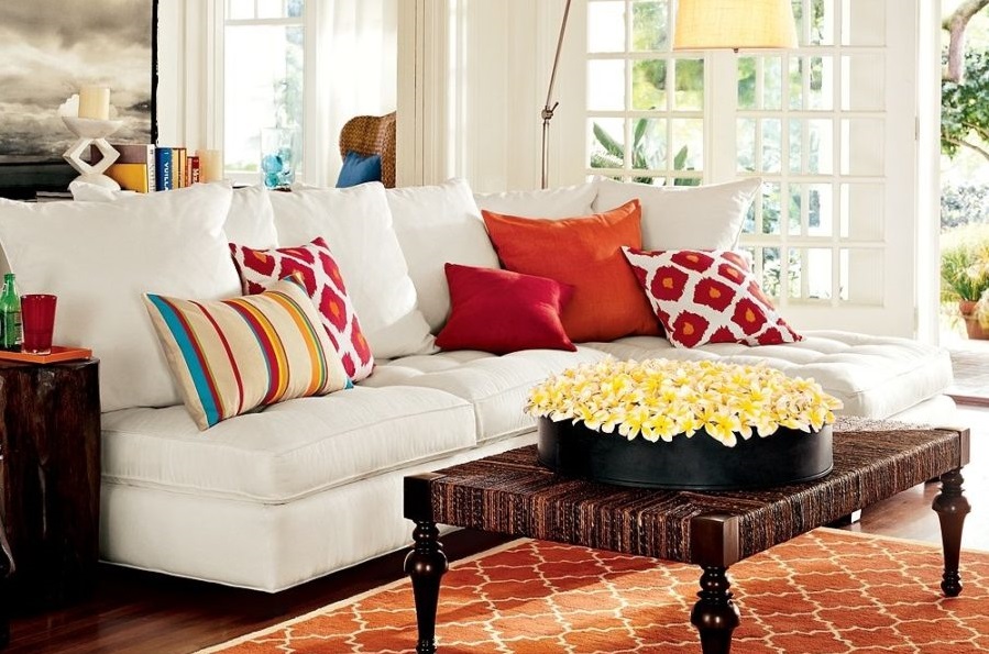 - Salon - Un endroit pour recevoir des invités, se reposer et se détendre. Les oreillers jouent ici un rôle important dans la commodité (rouleaux, bouffées). Il convient de prêter attention à la couleur, car ces accessoires de la salle de séjour, en plus de son rôle fonctionnel, apportent une lumière vive à l’intérieur. Vous ne devez pas limiter votre choix à des nuances de couleur. La forme et la taille de ce modèle sont très variées sur le marché moderne.