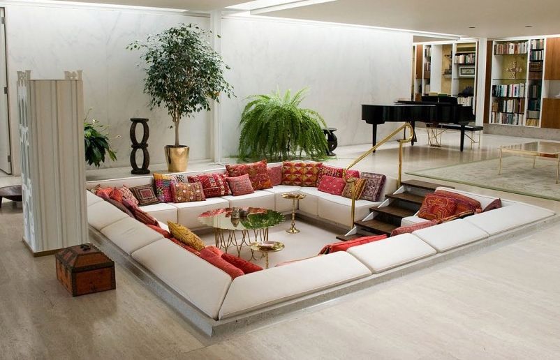 - Des coussins, Traditionnellement placés le long de son périmètre, en plus de sa fonction esthétique, sont utilisés à la place du dos pour un confort supplémentaire pendant le repos.