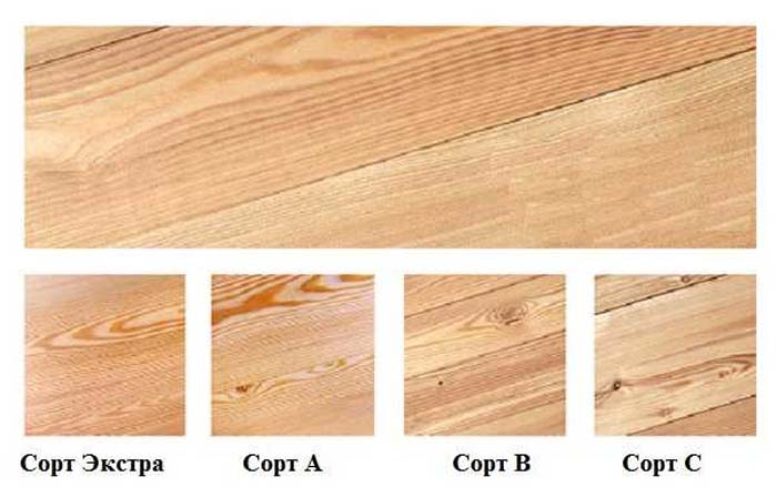 L'industrie produit plusieurs groupes de planchers variétaux. Ainsi, la catégorie Extra ne peut tout simplement pas avoir de défauts, même les plus mineurs.Dans des conditions normales, il existe suffisamment de produits du groupe A, qui ne sont parfois recouverts que de taches, et vous ne trouverez pas d’autres écarts par rapport à la norme, même avec une inspection minutieuse.