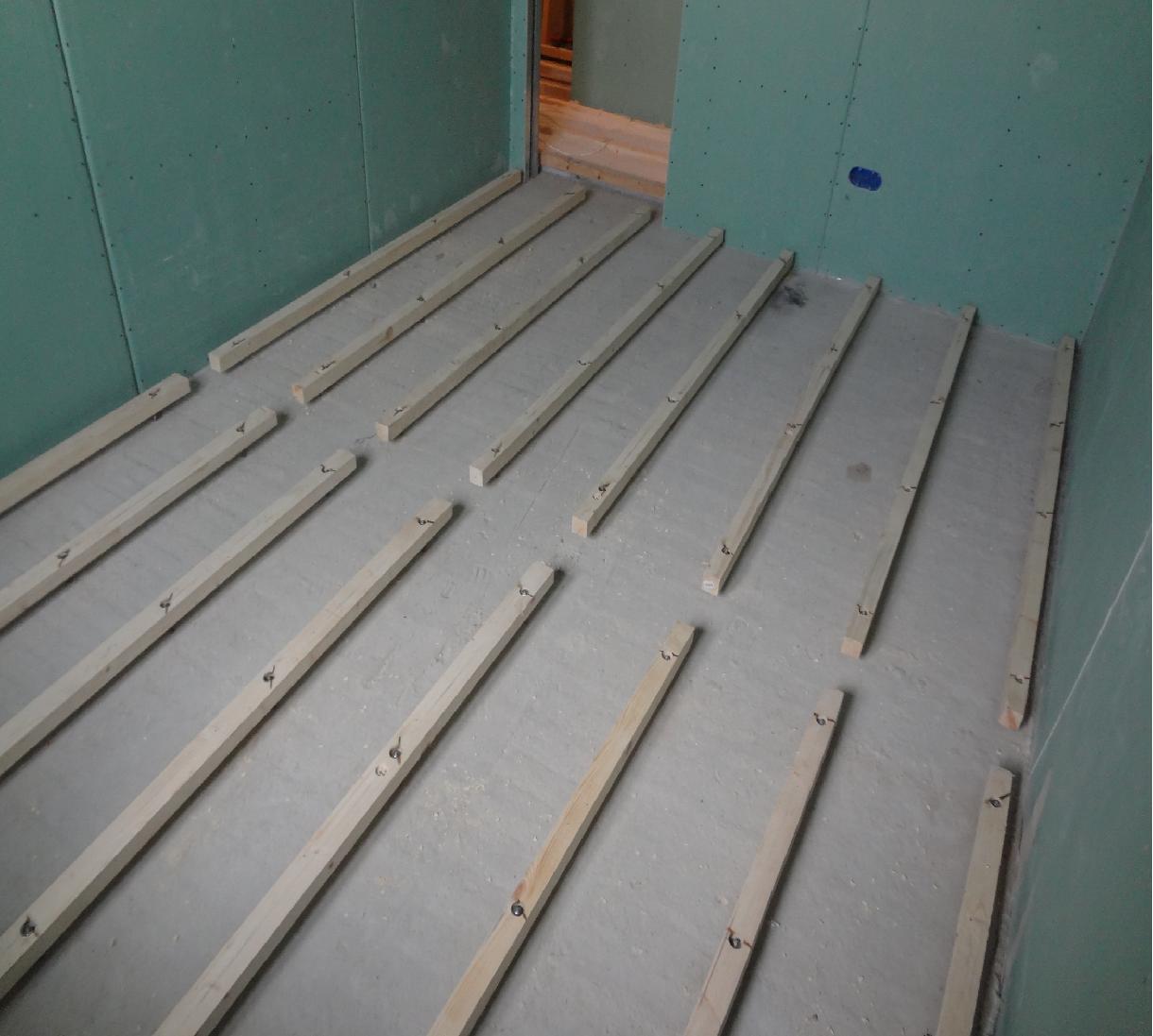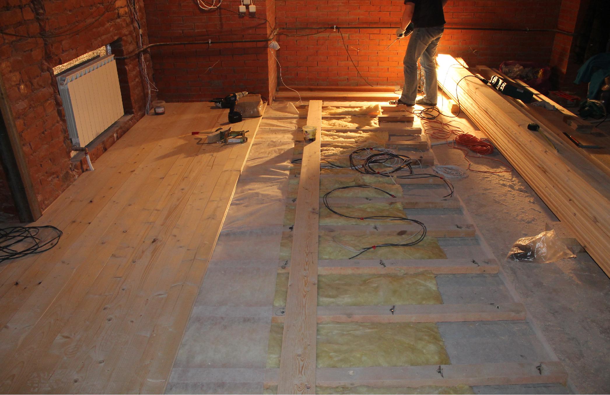 En plaçant les planches perpendiculairement aux grumes, l’étape de construction habituelle est de 0,6 m; si l’angle est plus petit, l’envergure est réduite proportionnellement. Ne remplissez jamais l’espace qui sépare les décalages du sol, sinon la ventilation serait brisée. Éviter les bruits excessifs lors de la marche sur le sol aide couche d'isolation phonique. Dans tous les salons, tout faisceau doit être dirigé perpendiculairement à la fenêtre et dans les couloirs, parallèlement à la direction du mouvement.