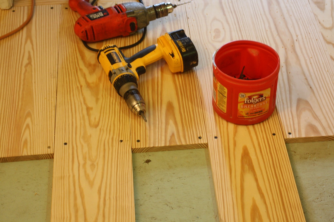 Les planches courbées ne peuvent pas être remplacées sans enlever les fixations, elles doivent être retirées lors de la reconstruction du plancher de séchage. Pour faire face à un minimum de problèmes, utilisez des vis, uniquement jaunes et non noires.