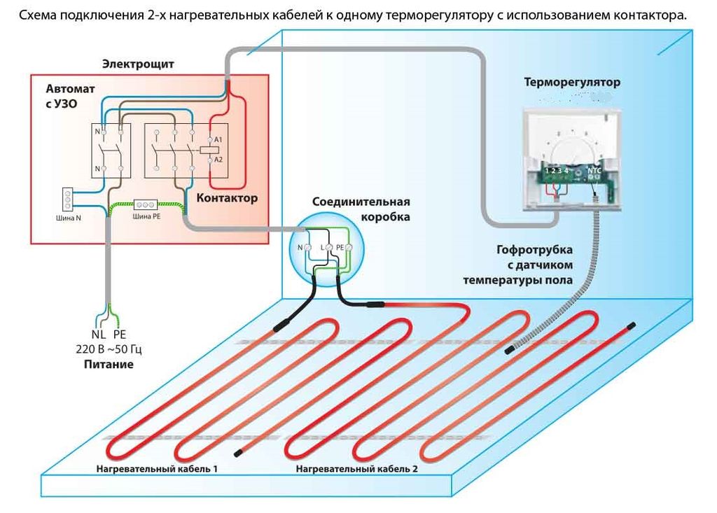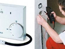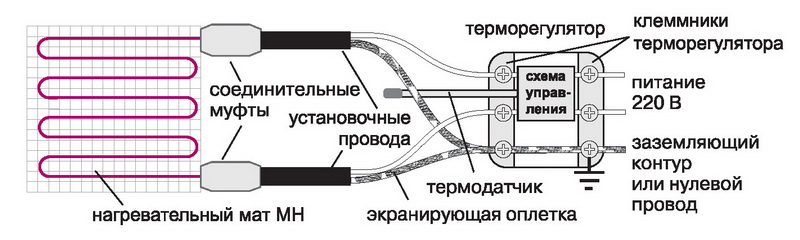 - Le fil du capteur électrique est connecté au thermostat. Le cordon lui-même est fixé entre les tours des éléments chauffants.