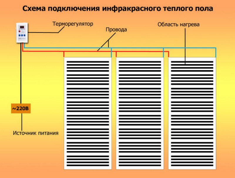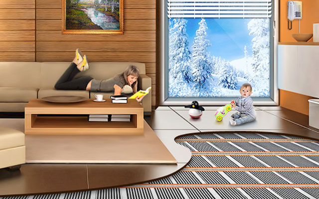 Lors de l'installation d'un chauffage électrique au sol (ETP) sous le stratifié, le parquet et le linoléum utilisent un chauffage par film (film infrarouge). Les rayons infrarouges traversent efficacement les matériaux et chauffent la surface du sol.
