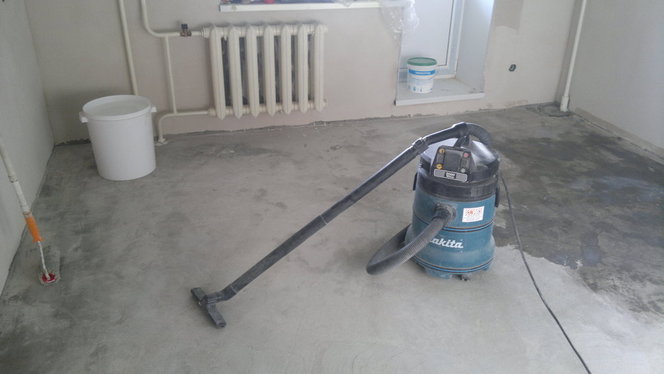 - Surface d'apprêt du sous-plancher. L'amorçage permet de mieux coller le substrat à la chape de ciment.