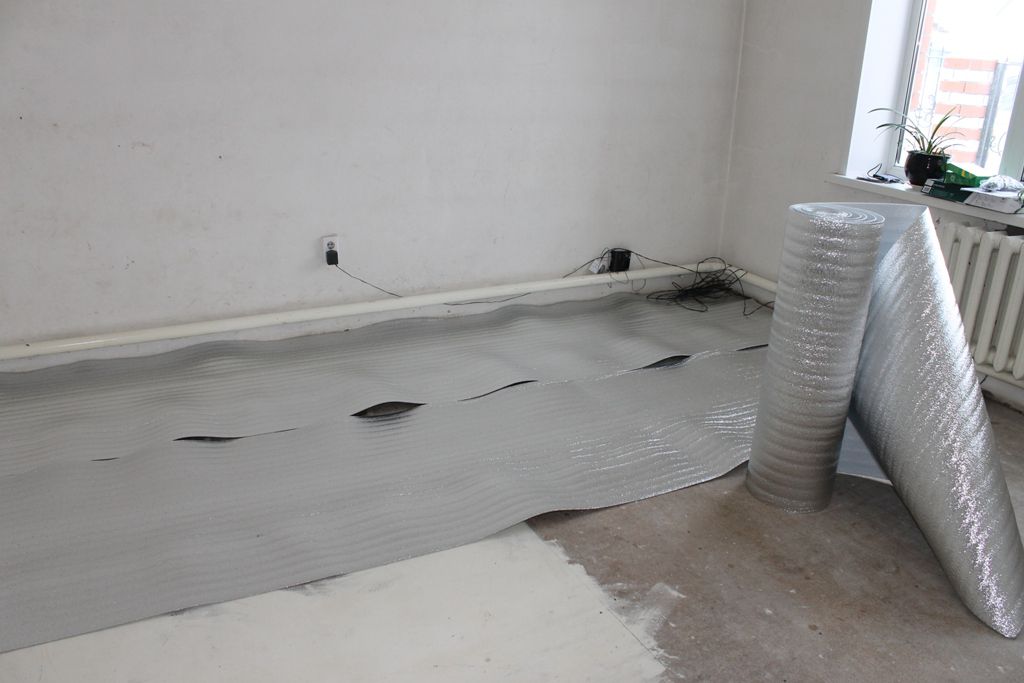 - La base du sol est recouverte d'une couche d'isolation thermique (d'une épaisseur maximale de 5 mm). Les joints du matériau sont fixés avec du ruban adhésif.