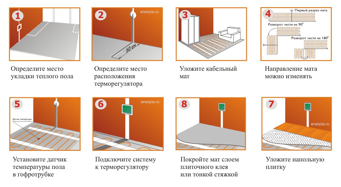 Les instructions pas à pas pour les différents modèles ETP sont légèrement différentes. Voyons de plus près comment monter différents types de chauffage par le sol de vos propres mains.