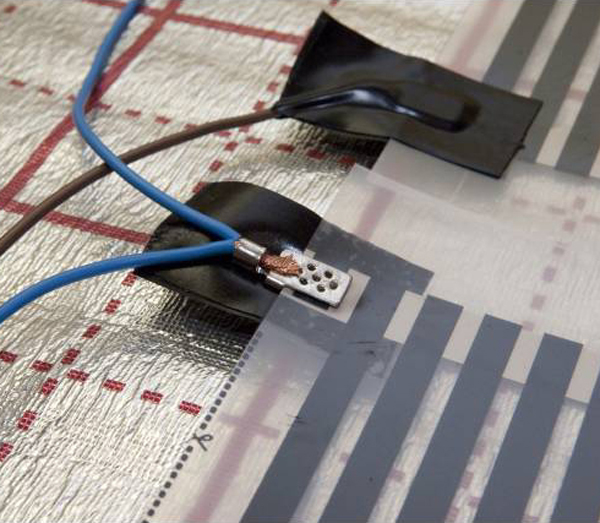 - Tout d'abord, il est nécessaire de connecter toutes les lignes du film. Vous ne pouvez utiliser que les terminaux fournis avec un chauffage par le sol complet. Les bandes de film sont connectées en parallèle. Tous les contacts doivent être isolés avec des superpositions.