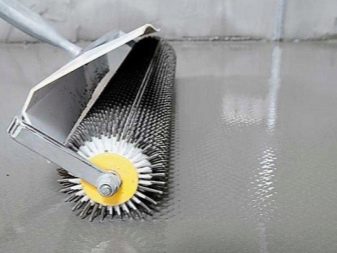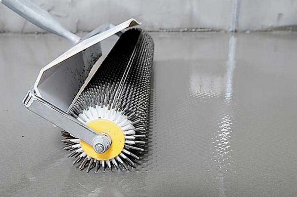 La surface coulée est pré-nettoyée de débris, dépoussiérée avec un aspirateur et apprêtée. Les grosses fissures et les copeaux sont humidifiés et enduits.Un ruban amortisseur est appliqué sur le pourtour de la pièce, ainsi que sur les colonnes, ce qui joue un rôle compensateur dans l'expansion de la composition de séchage. Ensuite, il est nécessaire de préparer une raclette, des chemins d’encre pour aiguilles et un rouleau à aiguilles.