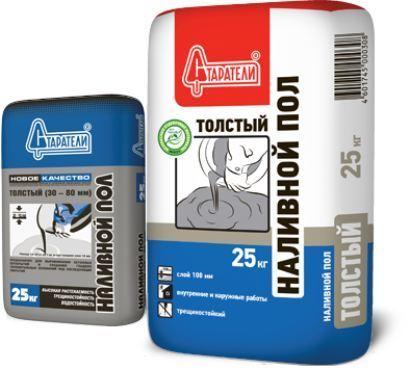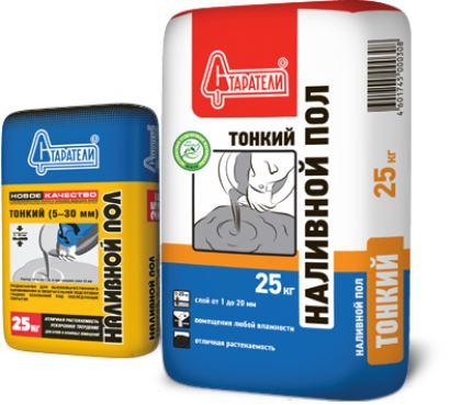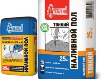 Un mélange de sol autonivelant "Thin" est composé de charges, d’additifs polymères, de liant minéral complexe et constitue un mélange ciment-sable. La solution "Thick" est composée de ciment, de charges fractionnées et d'additifs polymères. Le mélange "pratique" comprend des composants de gypse et de ciment, ainsi que des composants de sable fractionné et d'additifs polymères. L '«autonivelant» contient également du ciment, des charges fractionnées et des composants polymères.