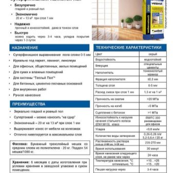 La structure pour un plancher en vrac Vetonit utilise un gros mil sur le marché russe. Sous la marque, différents mélanges sont disponibles avec des performances et des caractéristiques individuelles.