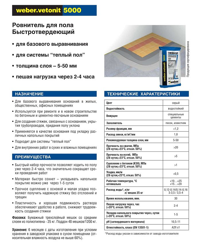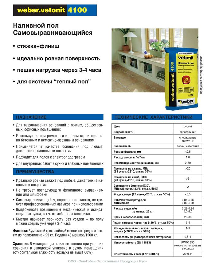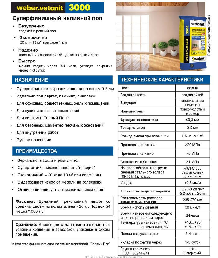 Ceci est un composé auto-nivelant. Après séchage, vous obtenez un sol parfaitement plat, sans le moindre défaut. Les fabricants ont utilisé du ciment sans caséine.