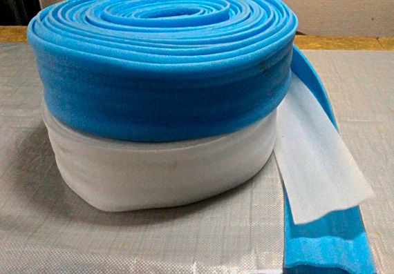 Autres noms du ruban amortisseur - bord, bord. Quel que soit le nom, les propriétés de ce produit ne changent pas. Il est réalisé sous forme de toile pas trop large enroulée en rouleau, dont la longueur varie de 10 à 100 m (habituellement 20 m) dans différents cas, d'une largeur de 5 à 15 cm et d'une épaisseur de 3 mm à 1 cm. centimètre peut être vu de petites incisions. Un tel détail est nécessaire pour pour permettre aux maîtres de déchirer plus facilement le matériau.