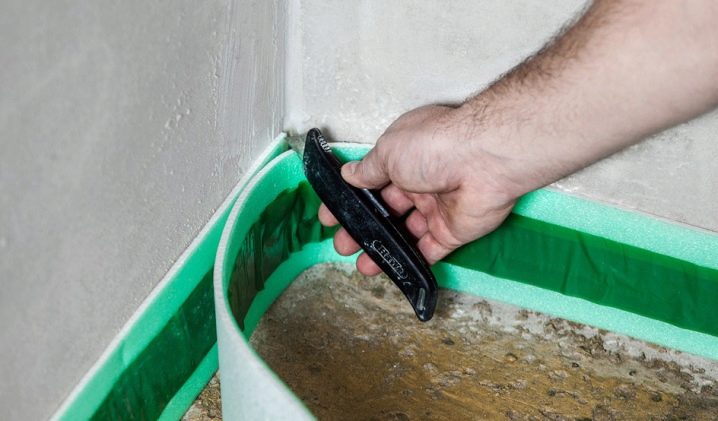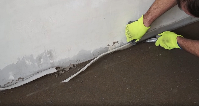 Selon les règles de construction intérieure, une fois que le mélange de béton est durci, le ruban de rive doit dépasser de 2 cm de la surface et ses restes doivent être coupés avec un couteau ordinaire.